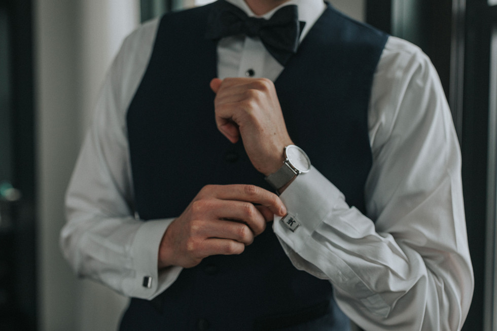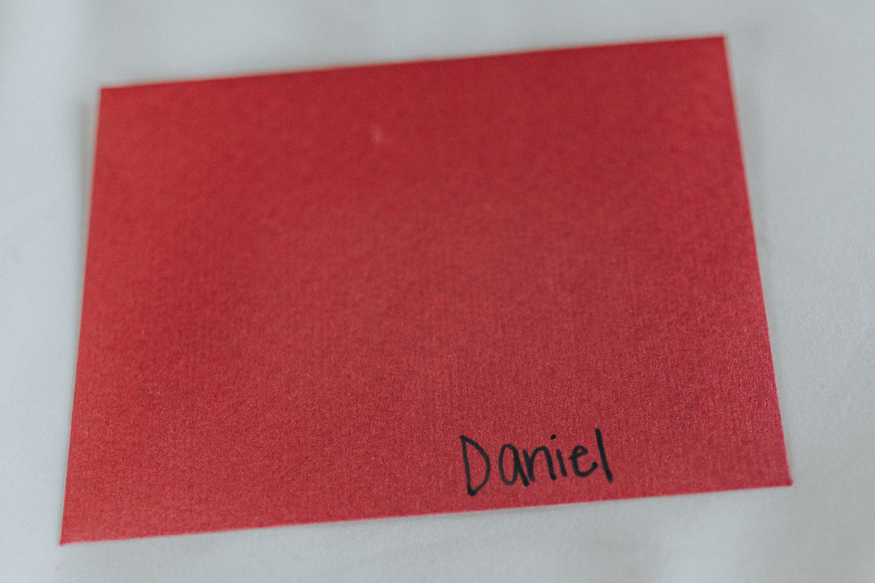 Dan and Kyle have a very modern style. The neutral aesthetic was cut with a dramatic red highlight, throughout the wedding. The envelopes that they addressed to each other were red. The ribbon that tied the shoe box was red, the invitations had subtle red lines, the bottom of Kyle and her mother’s shoes were red, the random photo location we picked had a red door and the unmistakable logo of Ovation was red. Some of these things planned, some fell perfectly into place; just like the snow.